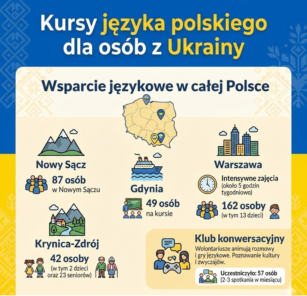 – 526 osób uczestniczyło w kursach języka polskiego